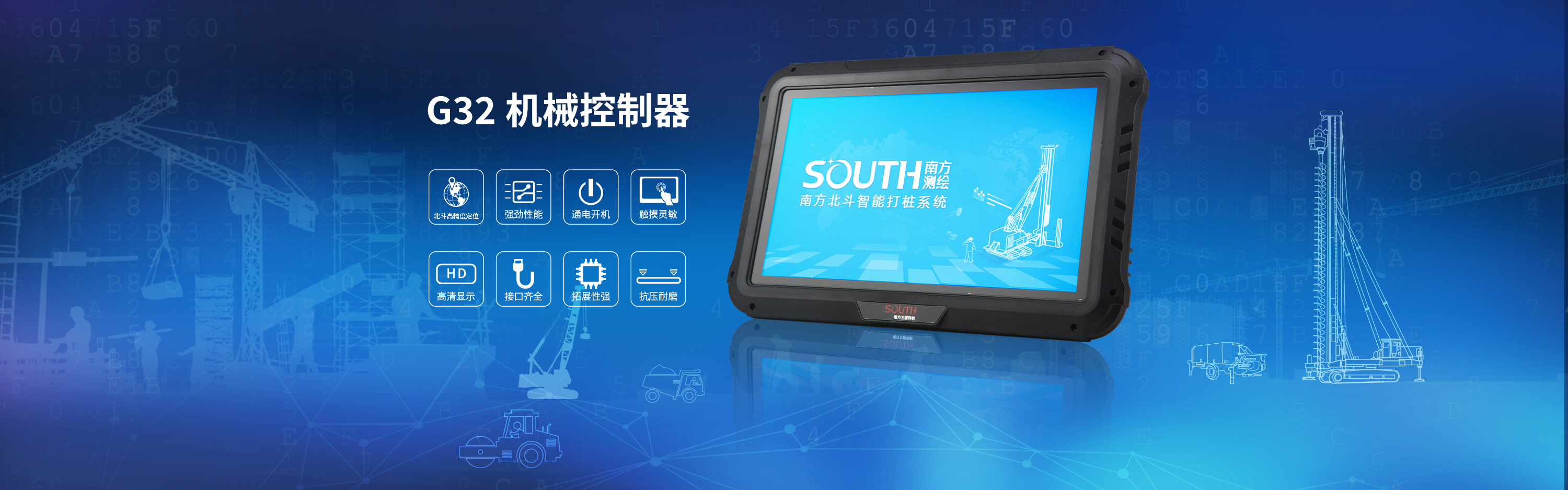 G32機(jī)械控制器是集北斗高精度定位定向功能、平板電腦于一體的高精度工業(yè)級(jí)操作終端,廣泛應(yīng)用于樁工機(jī)械、礦山機(jī)械、土方機(jī)械、港口機(jī)械、農(nóng)業(yè)機(jī)械等機(jī)械控制領(lǐng)域。